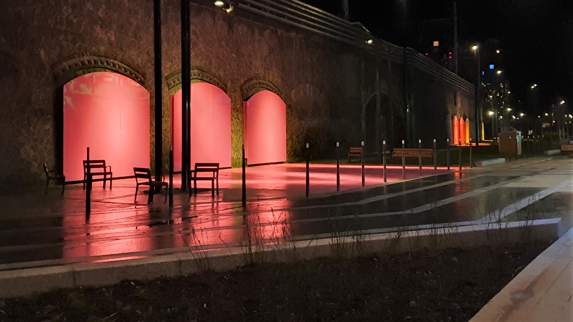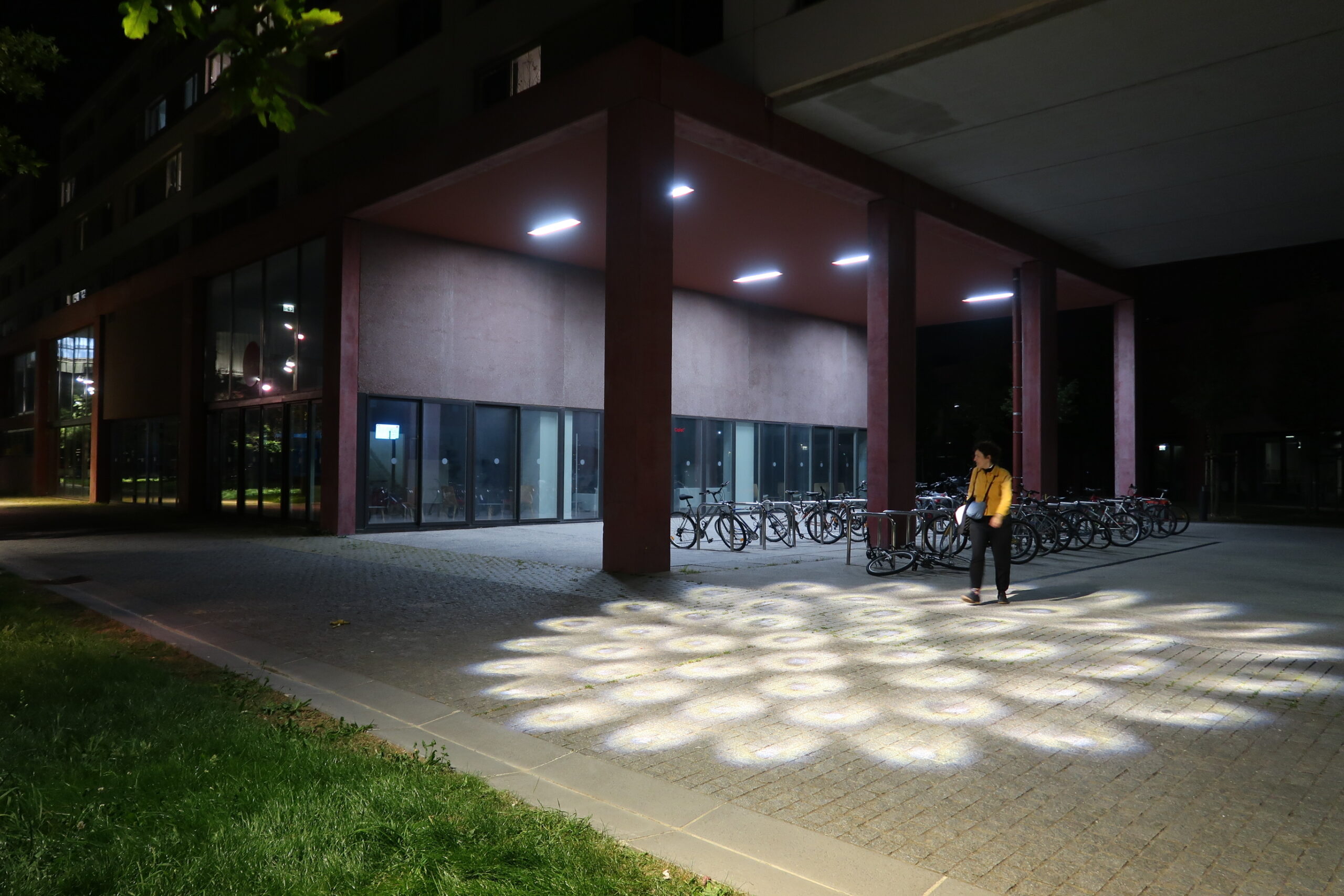 Des rampes leds ont été installées au plus près de l’architecture, hors champ de vision et sont asservies et programmées de façon à scintiller très légèrement, en laissant imaginer que ce sont encore des bougies qui éclairent le château.