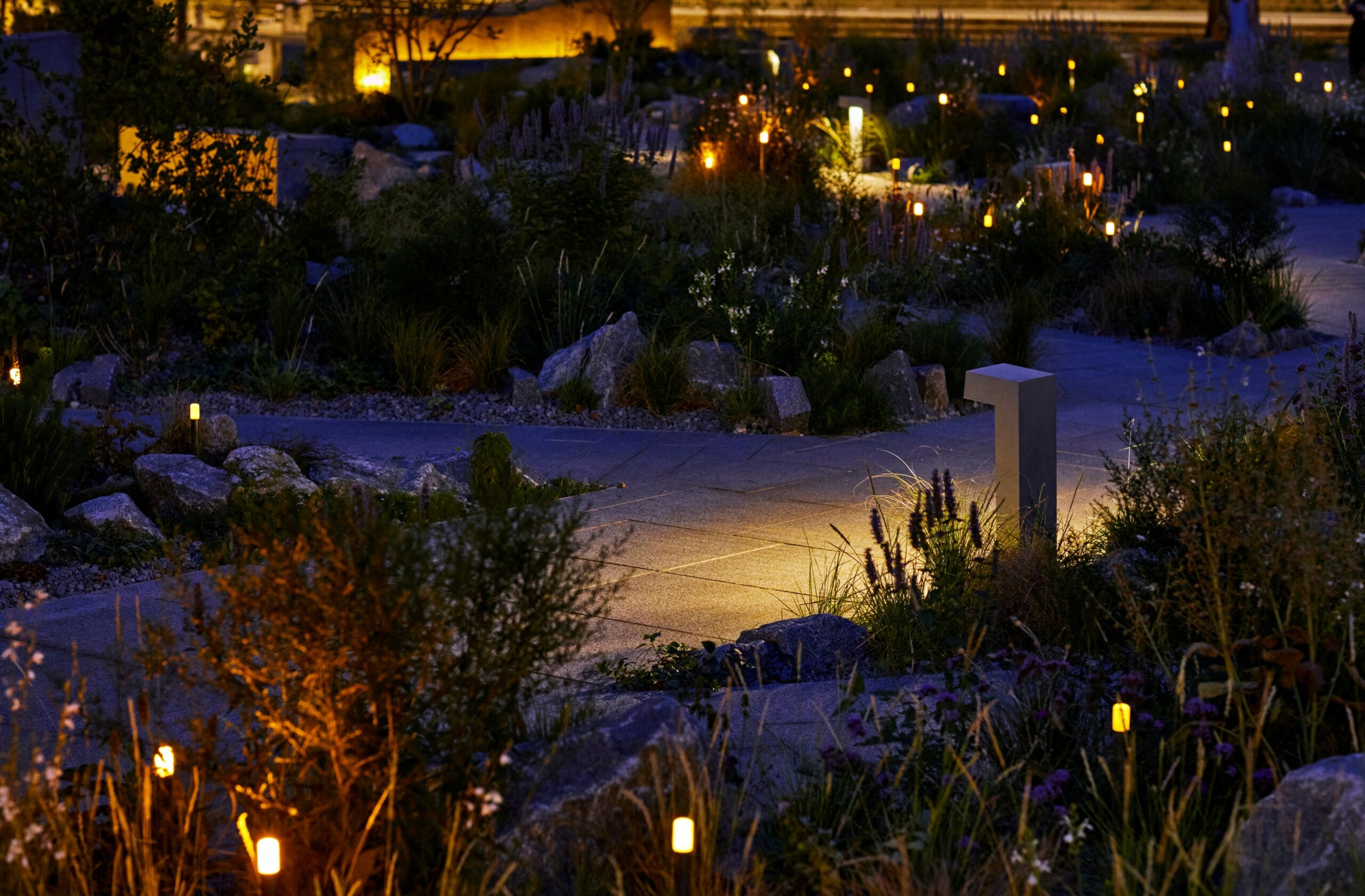 Le jardin s’articule autour de la dualité pierre/mouvement, symbolisant à la fois la brutalité des événements et l’errance de la mémoire. Son dessin reprend la géographie des six sites d’attentats, matérialisés par des stèles en pierre et des espaces de recueillement. Trois composantes structurent l’ensemble : une enceinte minérale qui affirme la dimension monumentale, six stèles commémoratives dédiées aux victimes, et un jardin végétal conçu comme une oasis de paix, accueillant biodiversité et oiseaux. Des espaces de commémoration, associés à l’orme de la justice et à l’olivier de la paix, permettent d’organiser cérémonies intimes ou collectives. La mise en lumière évoque des lueurs de bougies, renforçant l’atmosphère de recueillement.