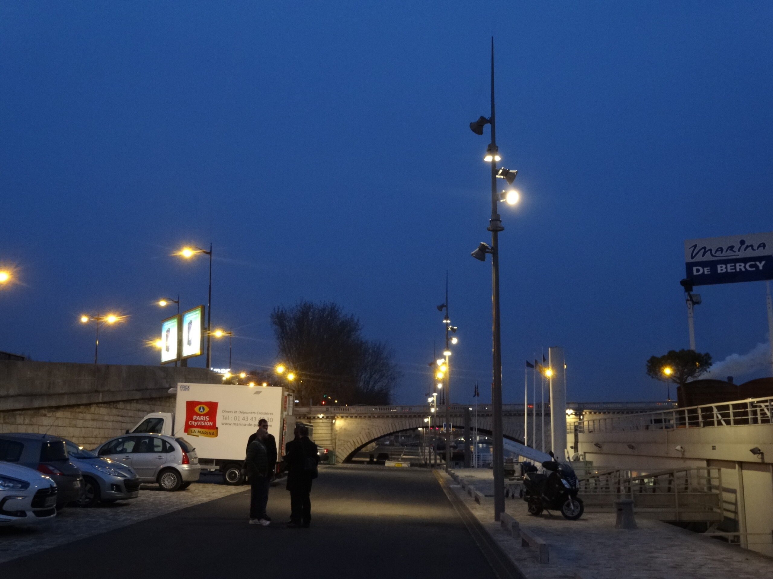 Assujettis aux lampadaires existants, les nouveaux éclairages accompagnent la traversée de la place par des taches de lumière colorée.