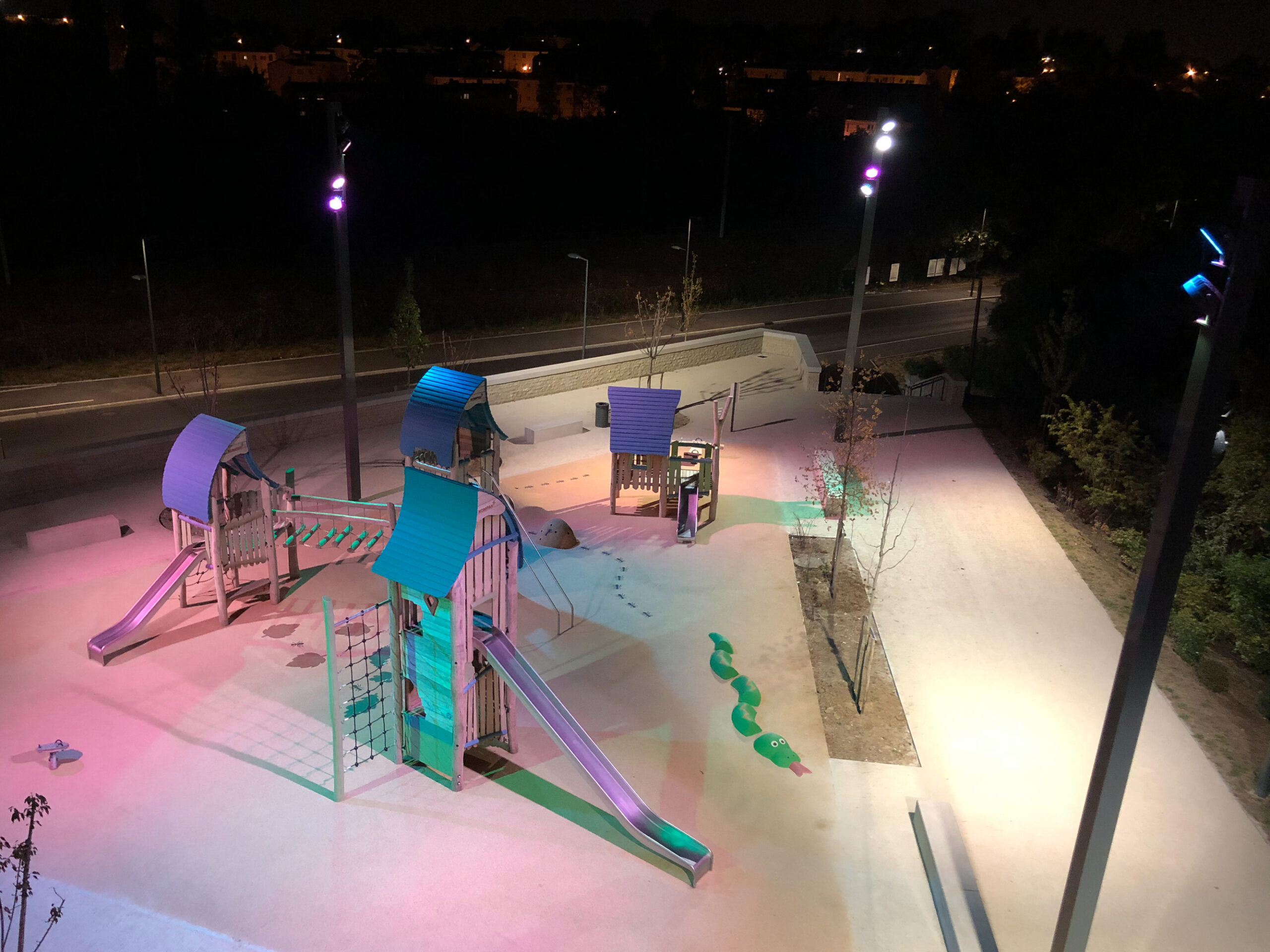 C’est une rénovation rafraichissante pour cette zone tout autant qu’un 1er jet permettant d’imaginer ce que l’éclairage sera à plus grande échelle. De plus, elle comprend des types d’espaces variés : rues, artère commerciale, places de stationnement, square/parc, place centrale aménagée… ; que nous avons étudié afin d’apporter la solution d’éclairage la plus adéquate possible.