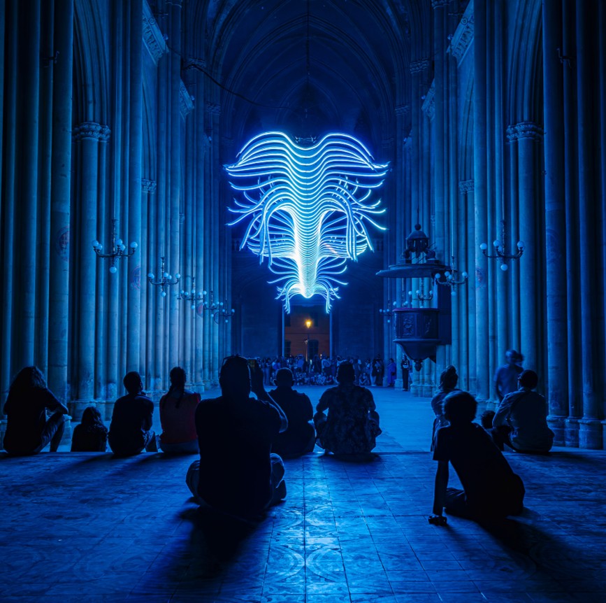 S’inspirant du mouvement zootropique, Un Oiseau de Passage est une installation immersive qui décompose le passage d’un oiseau géant en 64 étapes, et transforme cette sculpture en un récit en lumière, qui raconte la migration d’un oiseau traversant différents milieux, naturels ou humains, paisibles ou tumultueux, en solo ou en nuées. Il est lié à une création sonore spatialisée mêlant musique, chants et bruits concrets.